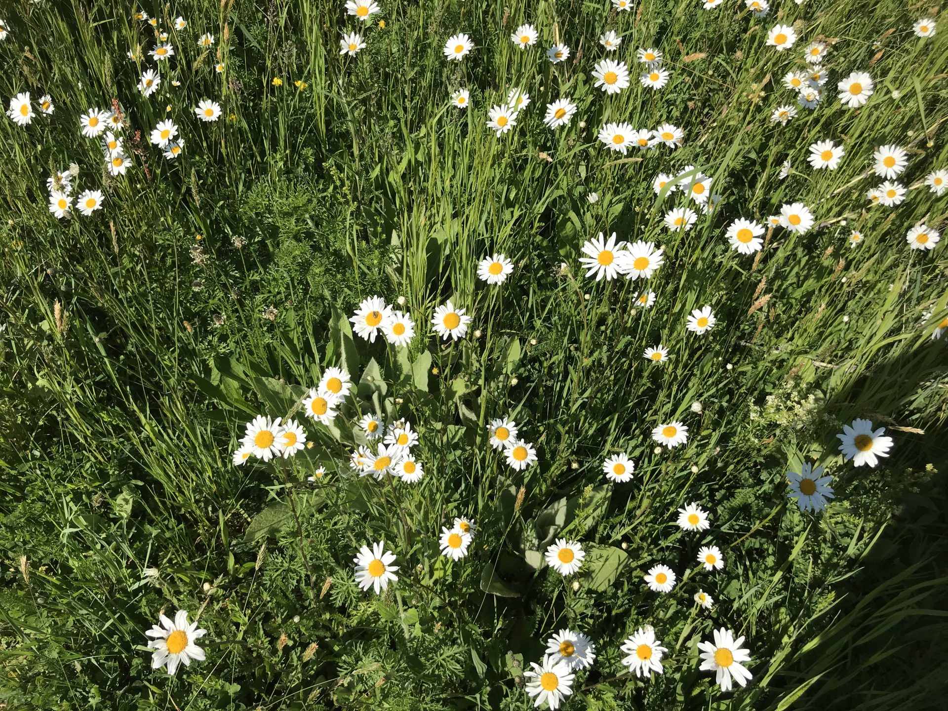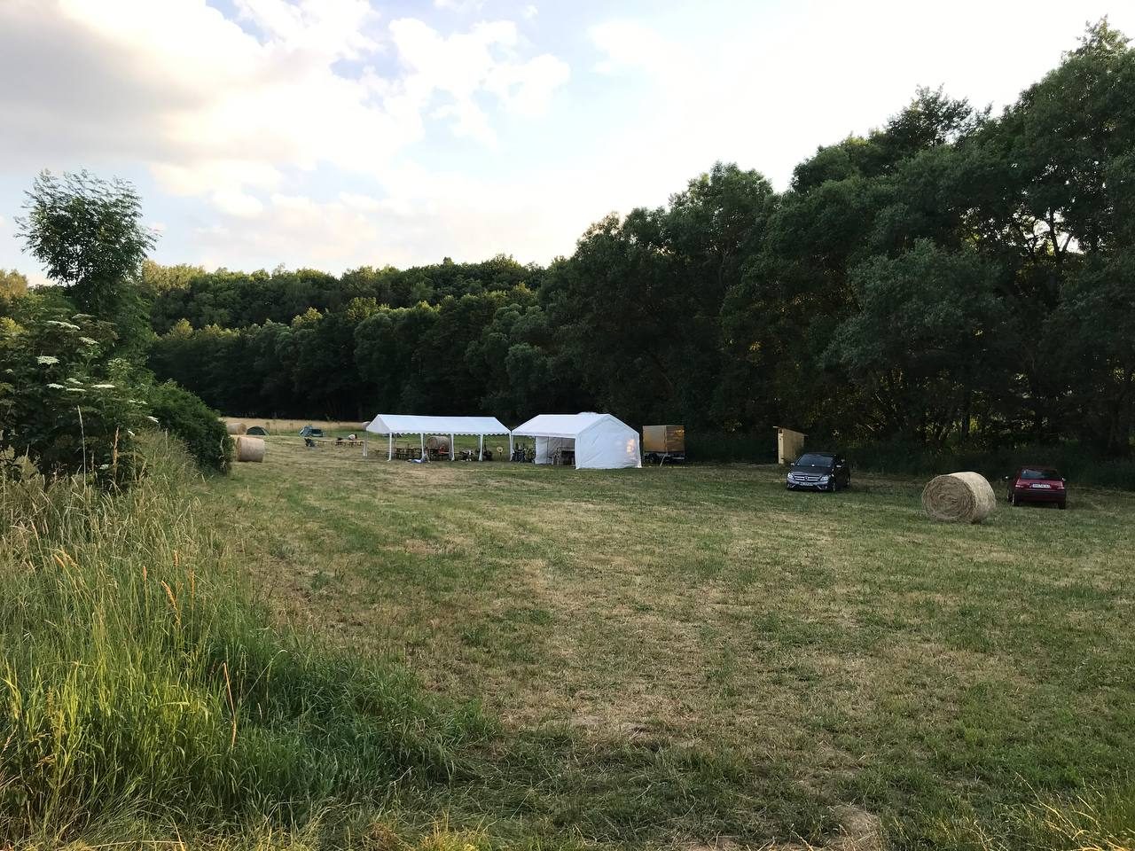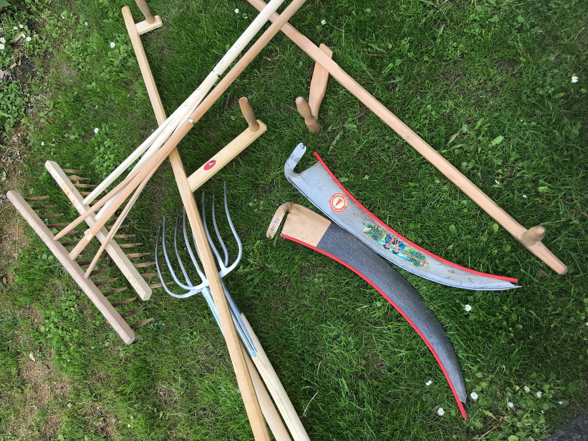 Hier gestalten wir seit 2018 eine artenreiche Mähwiese, die wir 2x im Jahr von Hand mähen und damit schon jetzt den Blütenreichtum erhöht haben.