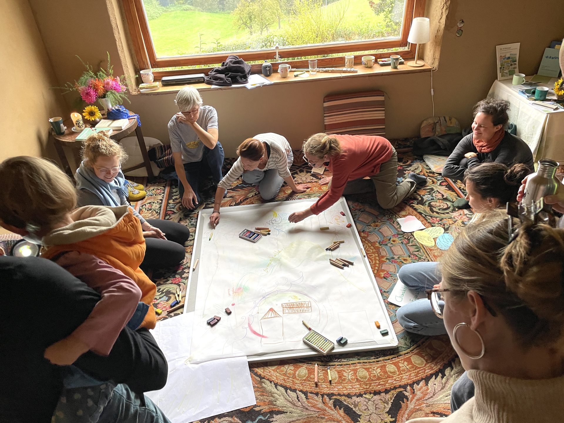 Mit Studierenden aus Psychologie, Medizin und Buisness haben wir auf dem Hof Günnemann Kotten in der Nähe der Uni die Wahrnehmung geschult, Potentiale für die Gartengestaltung gezeichnet und Biotope angelegt.