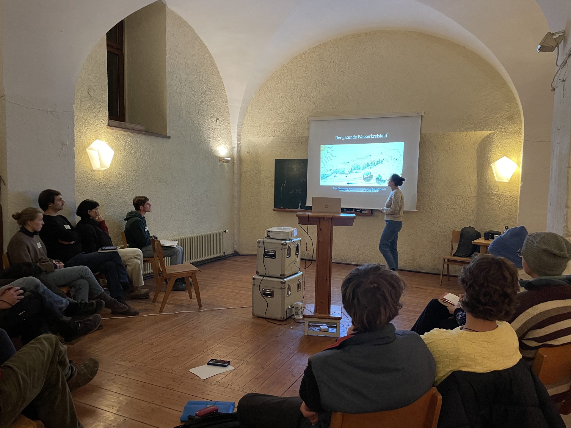 Mit den Landwirten und Gärtnern der Hofgemeinschaft, Studierenden der Landbauschule und externen Teilnehmenden wurden 10 Wasserretentionsmaßnahmen festgelegt. Schon jetzt ist ein sogenannter Bieberdamm umgesetzt und wir begleiten den Hof mit seinen weiteren Wasserretentionsprojekten.