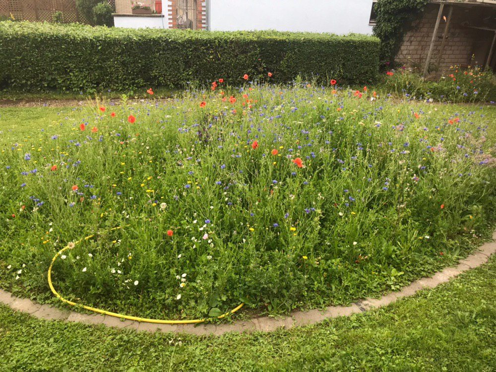 In Karlsruhe wurde eine artenreiche Mähwiese angelegt und pflegen sie seitdem 2x im Jahr von Hand mit der Sense. Es haben sich unzählige Insekten eingenistet.